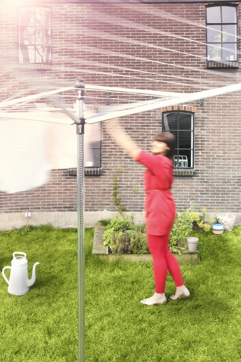 Gemakkelijk en milieuvriendelijk je was drogen doe je met deze Brabantia Lift-O-Matic Droogmolen met Grondanker – 50 m. Met het Lift-O-Matic systeem is de molen traploos instelbaar op je ideale werkhoogte. In de laagste positie is de droogmolen bijvoorbeeld ideaal voor het luchten van kussens en dekbedden.