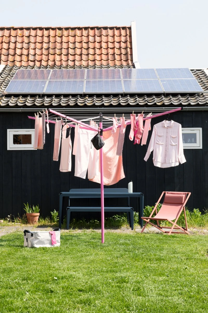 Droog je was buiten met deze Brabantia Lift-O-Matic Droogmolen met Metalen Grondanker, Beschermhoes, Wasknijpertasje en Wasknijpers – 50 m in de unieke kleur Spring Pink. Je was krijgt die frisse geur, je kleren blijven langer mooi en het kost niets want de zon is tenslotte gratis!