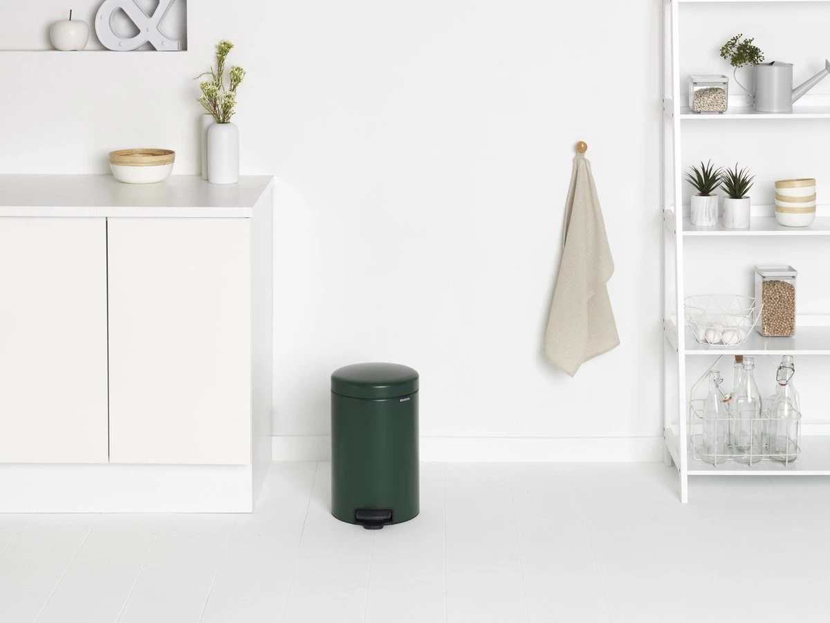 De Brabantia newIcon Prullenbak – 12 l – Pine Green met kunststof binnenemmer is een schoonheid voor in de keuken. Genoeg ruimte voor je afval en hij past perfect onder je aanrecht. Brabantia’s newIcon pedaalemmers zijn niet alleen iconische schoonheden, ze zijn ook betrouwbare hulpjes in de huishouding. Stevig en altijd stabiel, dankzij hun antislip onderkant en anti-kantel blok.