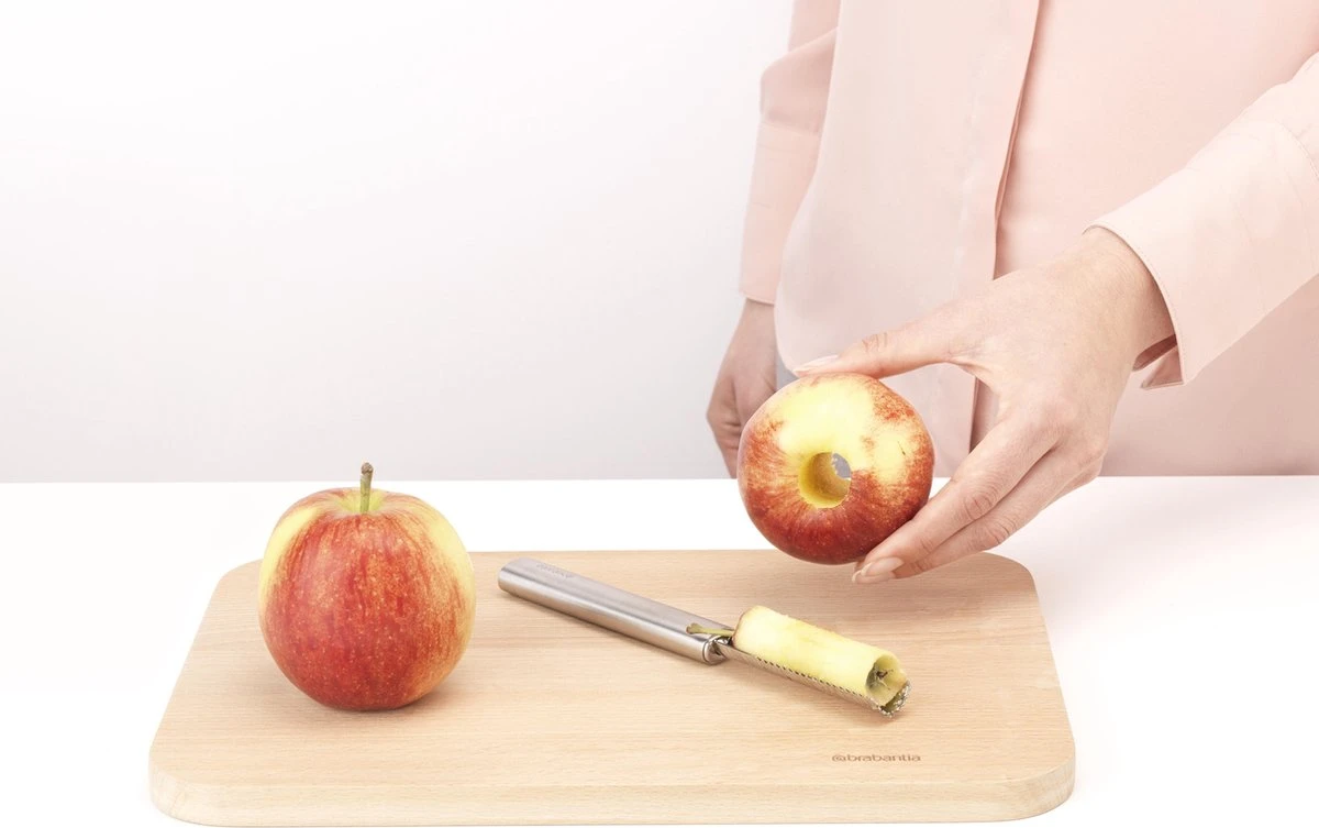 Een stijlvolle keuken met een Brabantia Profile Appelboor. Het verwijderen van klokhuizen is wel heel gemakkelijk met deze appelboor. Het scherpe, gekartelde mes snijdt eenvoudig door appels, peren en zelfs door ananas.