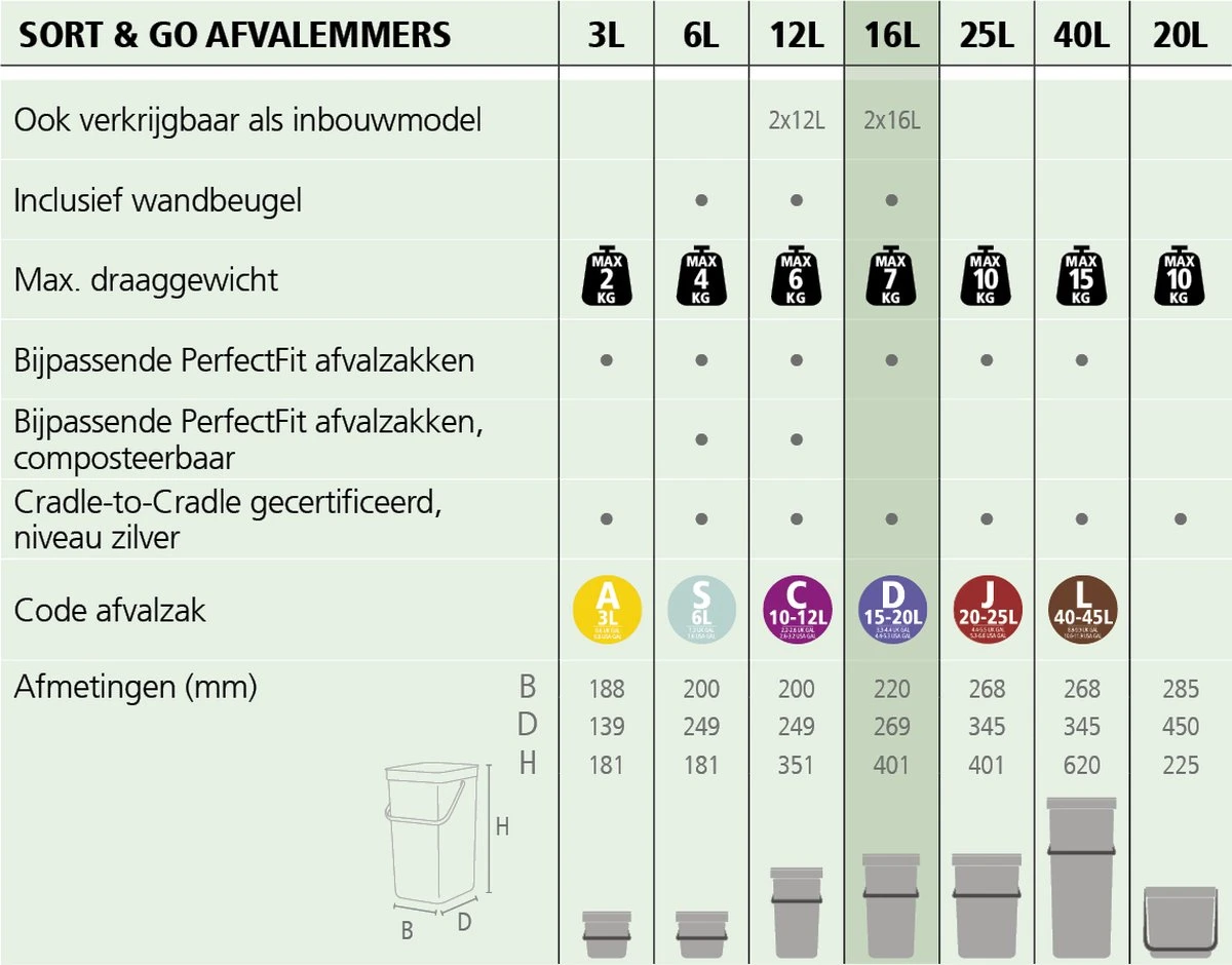 Afvalemmer, Afvalscheidingsprullenbak, Compostbak, Papierbak
